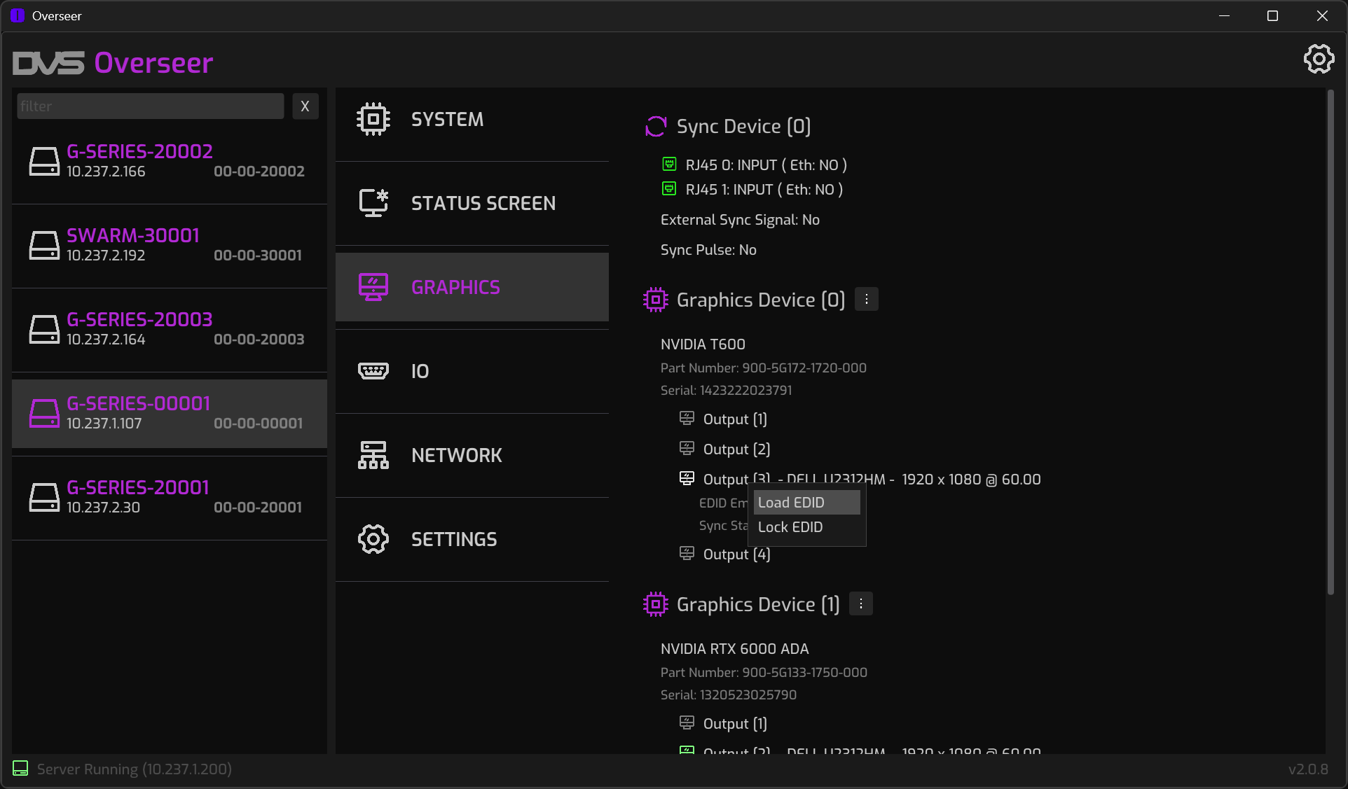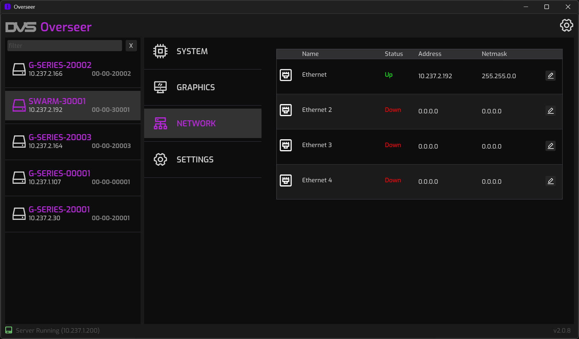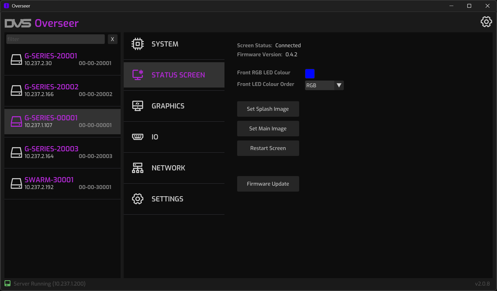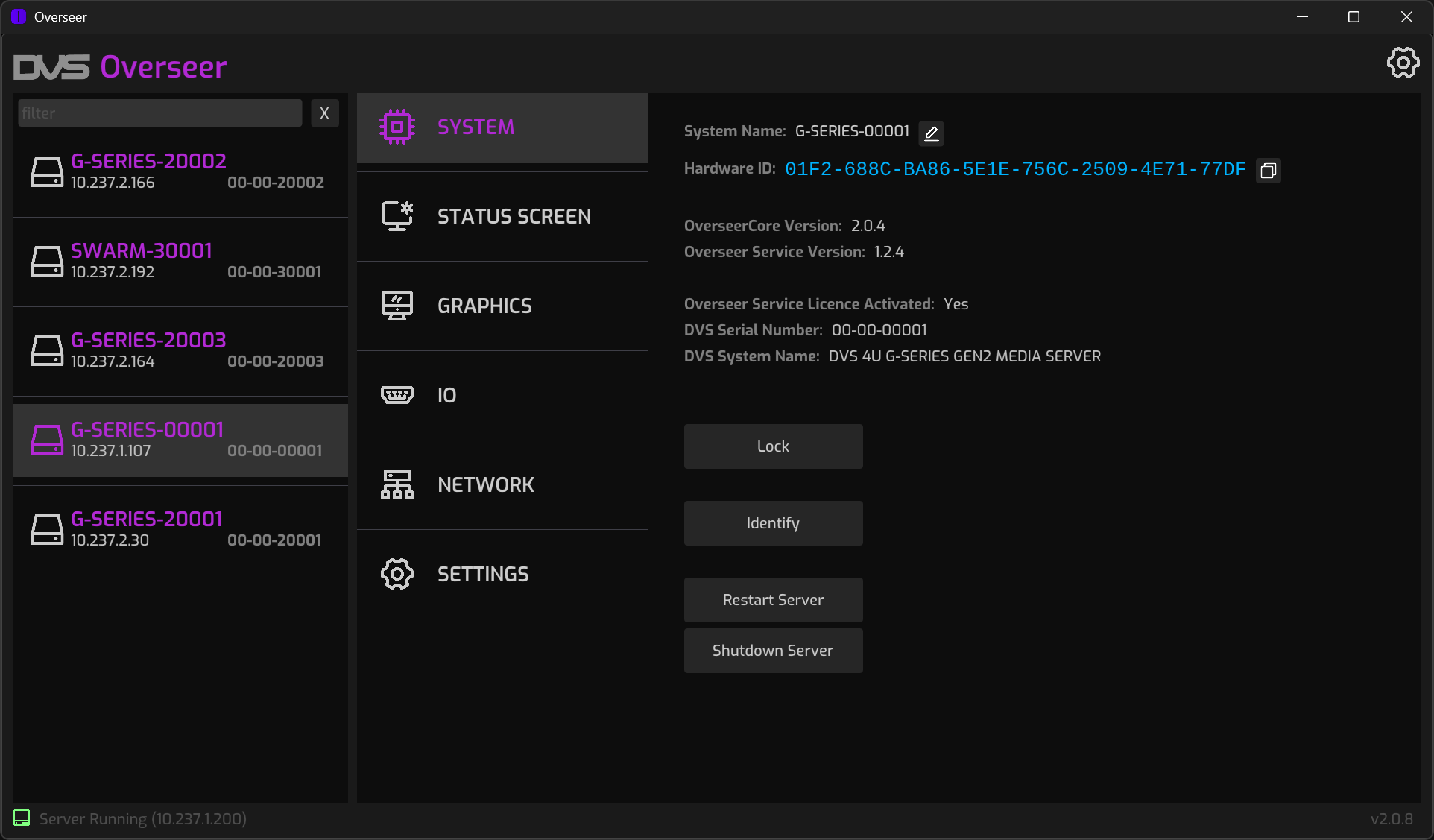 Overseer gives engineers operating DVS G-SERIES, SWARM and HYDRA servers a fantastic tool-kit for configuration and monitoring.